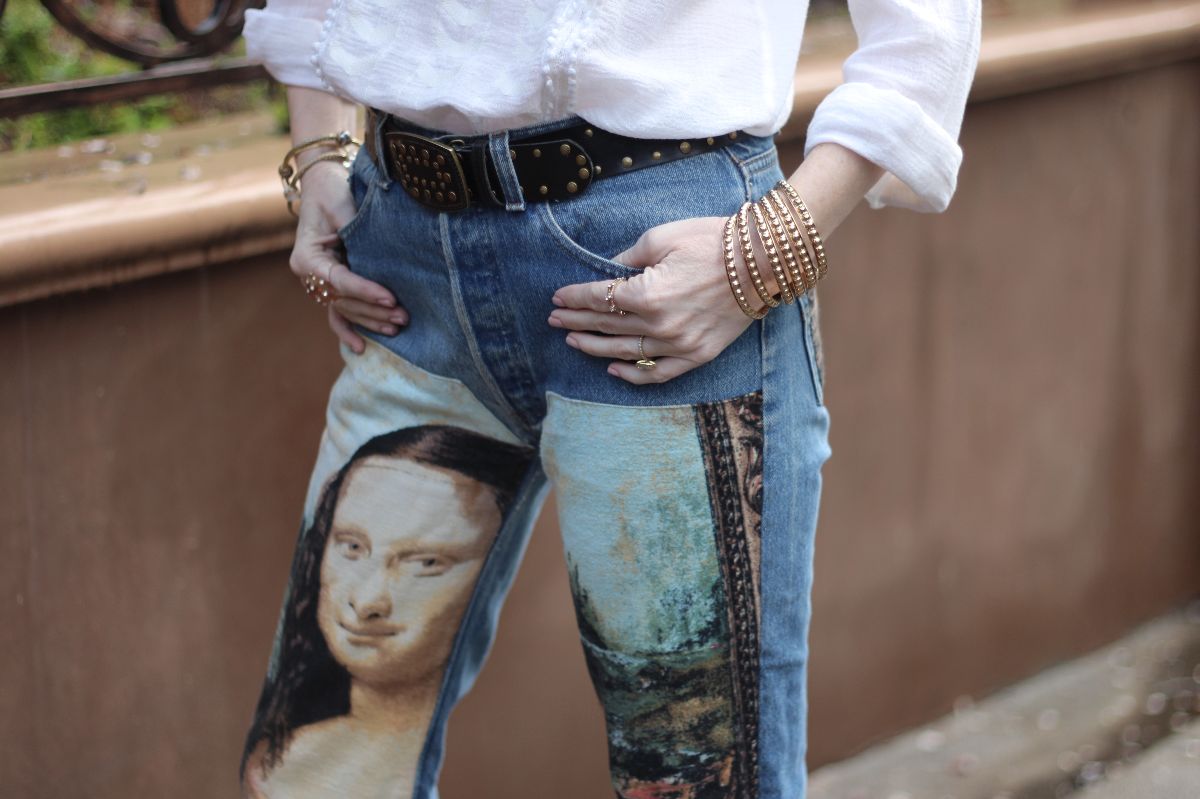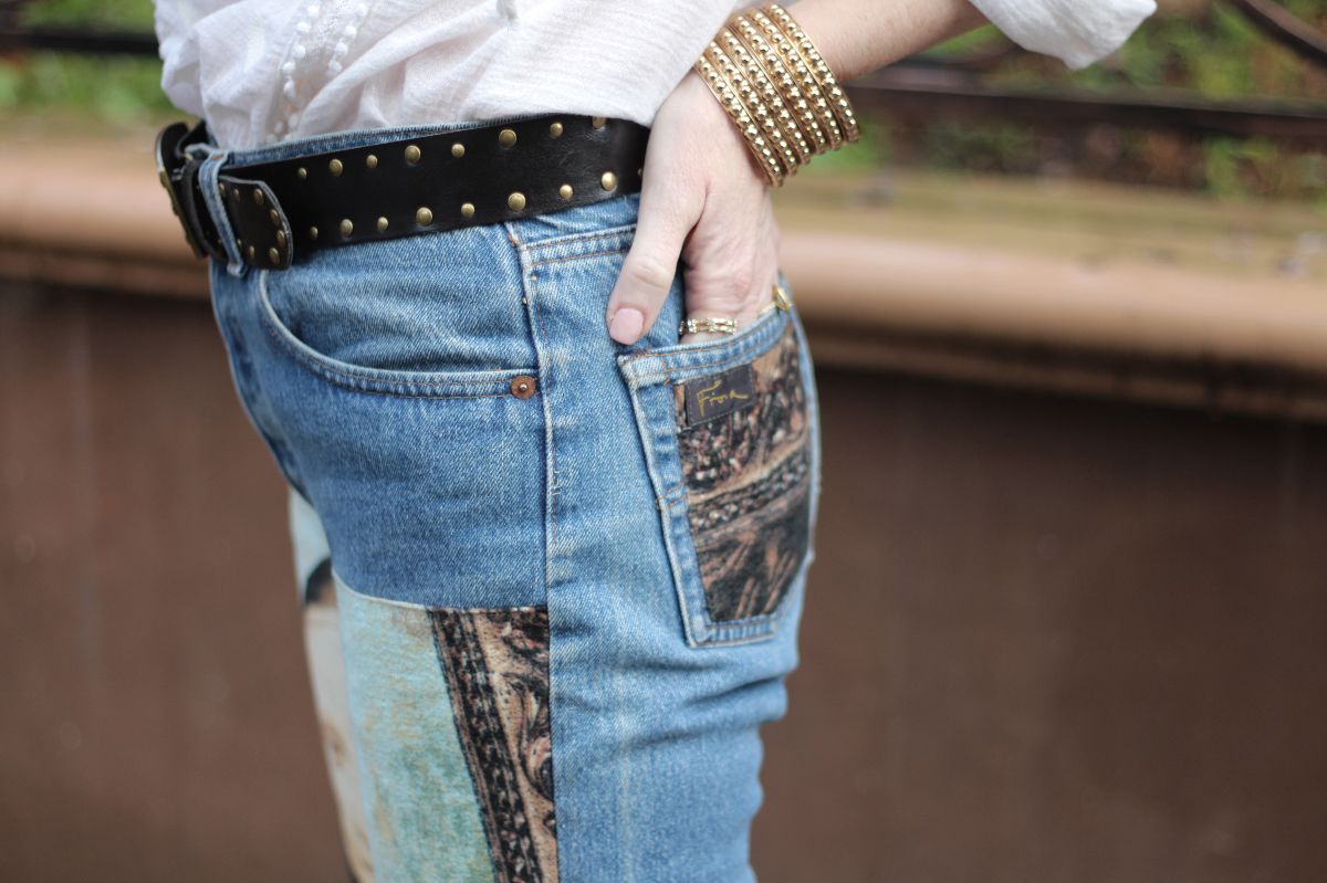 I was so excited to find these Mona Lisa jeans on one of my vintage hunts last week! They were only $5.99!! I feel especially lucky that they fit as well as they do. I wish they were an inch or two longer but I’m so tickled with them that I can overlook the length! I haven’t worn vintage 501’s in years and I immediately fell back in love with the fit, especially the high rise waist in the back: